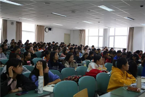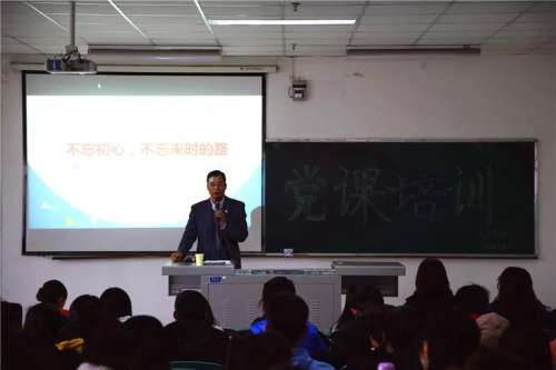 院长胡玉冰主讲,学院辅导员余晓玲、第三十三期入党积极分子、第十期发展对象等一百多人参加。