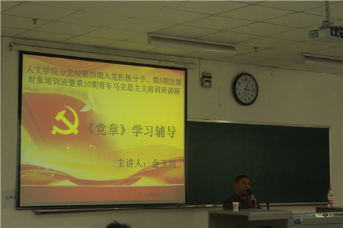 分党校第28期入党积极分子、第5期发展对象培训班暨第10期青年马克思主义培训班党章学习辅导讲座在贺兰山校区文科楼132教室成功举行。学院党委副书记金玉河老师主讲,学院56名入党积极分子、41名建党对象参加。