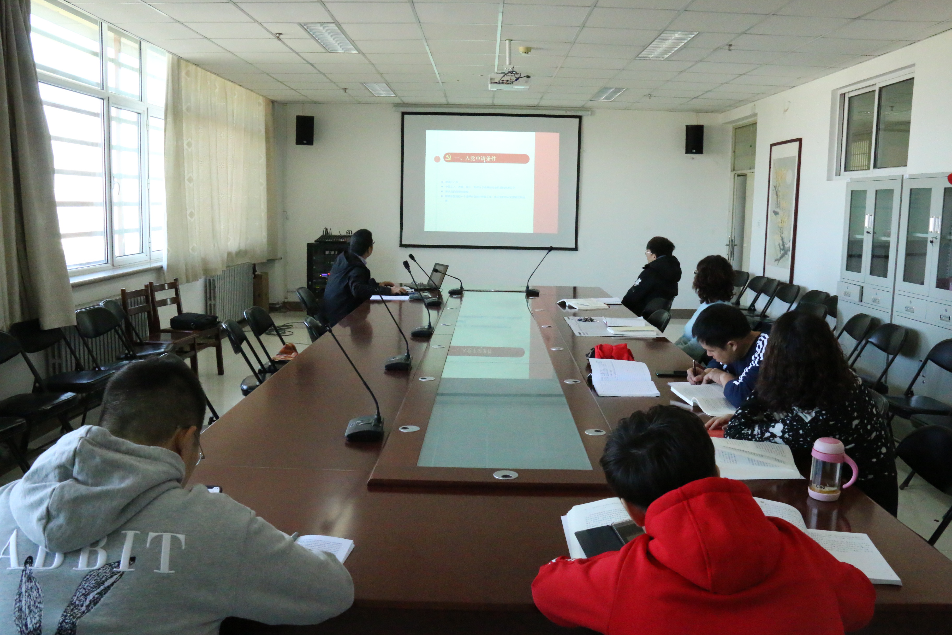 (回族研究院)开展“不忘初心、牢记使命”主题教育实施方案》要求,10月29日,学院行政教辅党支部书记李斌以“如何做一名合格的共产党员”为题做主题教育党课讲座。支部全体党员参加。
