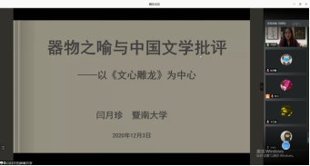 于腾讯会议平台举行了题为“器物之喻与中国文学批评”的学术讲座。本次讲座特邀暨南大学海角社区