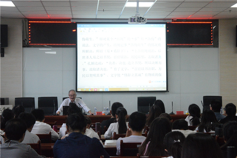 讲座伊始,胡大雷教授和大家分享了自己的求学经历、成长过程,其中,他特别谈到了学术研究方法的重要,只有掌握了科学的方法,才有可能做出好的学问。接着,胡大雷教授从“诚”与“仁”、“义”,“诚”与“天”的关系着手,由浅入深地为大家详细地阐述了何为“修辞立其诚”。他还结合春秋战国的具体史实分析,从礼崩乐坏等方面谈“修辞立其诚”,并大量引用《春秋》、《左传》中的典故,化抽象为具体,引人入胜。之后,胡大雷教授重点阐述了修辞立其诚与文本文体的生成问题,他结合《晏子春秋》以及《滑稽列传》中的人物事例生动形象的分析了何为不实言、不斥言、不直言的譬喻,使人受益匪浅。最后,王岩森教授简要总结了讲座的内容,他提倡大家将公共写作与私人写作结合起来,并强调拥有真诚的写作态度,文学创作才能达到“修辞立其诚”的效果。同时,他提出了对莘莘学子的殷切期望,希望大家能够向终身学习、持续精进的胡大雷先生学习,不断创新,成就自我。