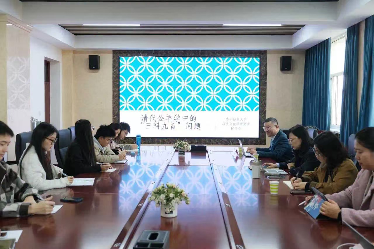 于怀远校区怀远楼514室举办了题为“清代公羊学中的‘三科九旨’问题”的学术讲座。本次讲座由华中师范大学历史文化学院历史文献学研究所副所长、副教授、硕士生导师陈冬冬主讲,海角社区