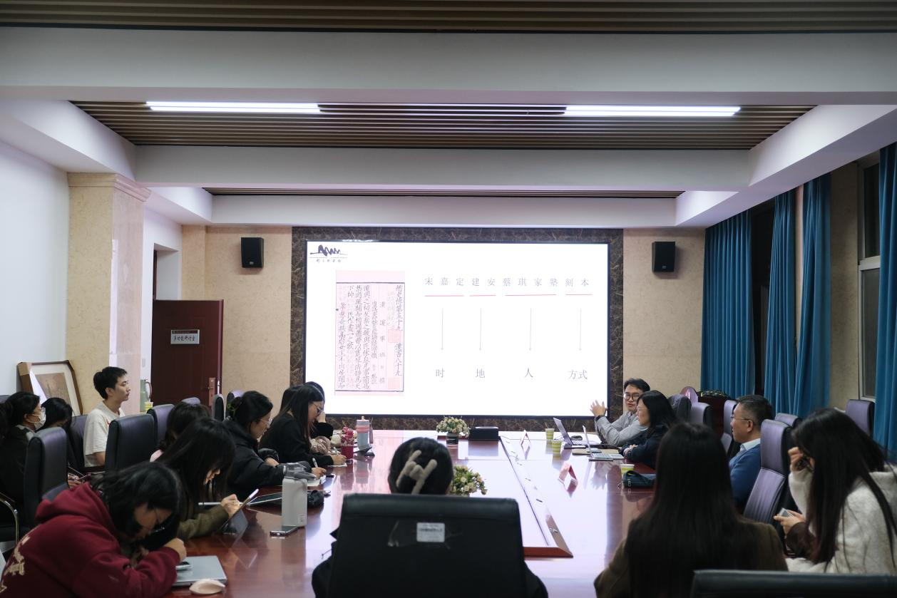随后,同学们结合自身在古籍版本研究中遇到的困难和疑问等与韩老师进行了互动交流,韩老师从自己的学习与研究经历出发,对同学们的困惑进行了耐心详细的解答。最后邵老师进行了补充和总结,认为韩老师的讲座让同学们丰富了版本学的相关知识,拓宽了视野,提升了实践能力,激发了大家对古籍版本研究学习的浓厚兴趣。同时鼓励大家学习韩超老师严谨的治学态度和实践出真知的研究精神,并对韩超老师的精彩分享表达了诚挚的感谢。