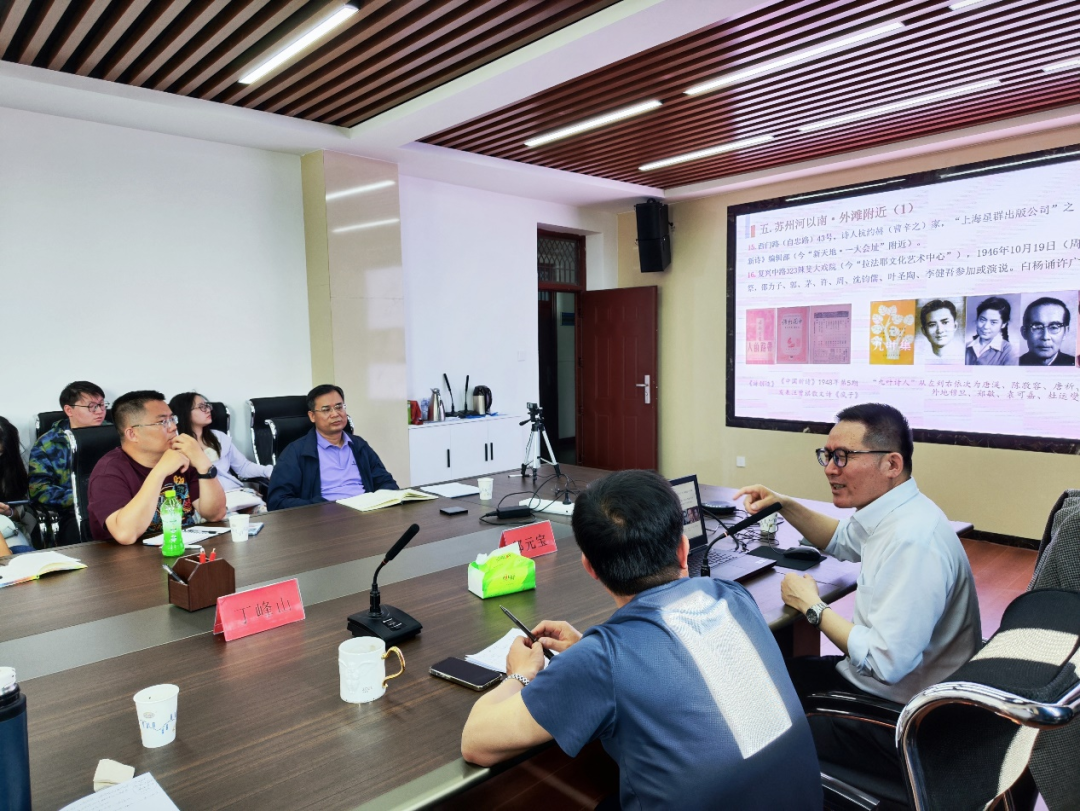 讲座互动环节,与会学者围绕郜教授的报告内容展开了深入并富有建设性的讨论。青年教师和研究生们也积极参与,就研究方法、史料解读等提出了诸多具有启发性的见解。整个研讨环节充分展现了跨学科对话的学术魅力,既有宏观理论层面的思辨,又有微观史实的细致考证,为未来的汪曾祺研究指明了若干新的可能路径。最后,胡玉冰院长代表学院向郜元宝教授致谢并总结发言,他特别指出,这种基于新史料、新方法的深入探讨,不仅拓展了研究视野,更体现了严谨求实的学术精神,对推动学科发展具有重要意义。讲座在热烈而又持久的掌声中圆满结束。
