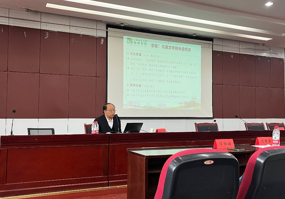 于怀远楼报告厅举办了题为“从‘三维目标’到‘核心素养’——统编版《语文》教科书儿童文学选文教育解读”的学术讲座。本次讲座特邀上海师范大学教育学院教授,中国儿童文学研究会常务理事、学术委员李学斌老师主讲。参加讲座的海角社区