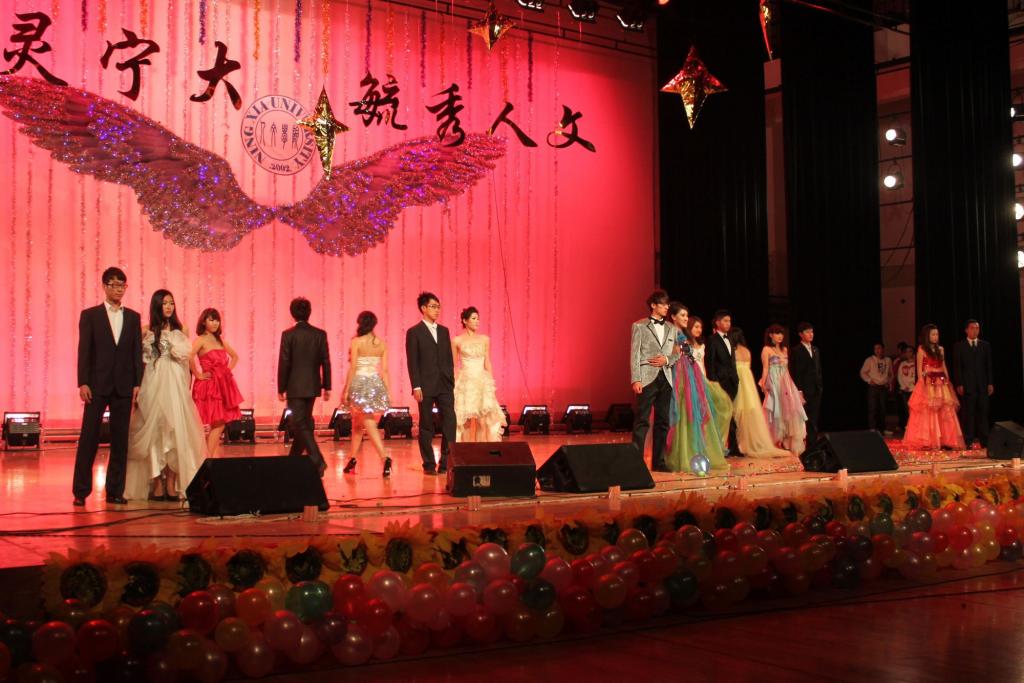 表彰大会结束后,音乐渐起,灯光变幻。在节奏明丽,舞步轻快的开场舞中,让大家期待已久的文艺演出正式拉开序幕。伴随着金色的灯光和优美的旋律,四位主持人一一亮相,他们带领我们一同唱响了“钟灵宁大、毓秀人文”晚会主题。本次晚会分为《相约人文》《激扬青春》《岁月如歌》三个乐章,每一乐章都有精彩的内容呈现给在场的观众。无论是风情各异的民族舞蹈,还是动感活泼的啦啦操;无论是欢快深情的小合唱,还是激情昂扬的诗歌朗诵,无一不引来现场观众热烈的掌声和欢呼声。美丽的天山姑娘、华丽的时装盛宴,还有如火的西班牙风情,都让人回味无穷。激情的歌曲串烧更使得现场气氛达到高潮,欢呼喝彩声此起彼伏。小品《礼物》给大家讲述了一个关于母爱与感恩的故事。一曲《国家》,让我们深深感到作为当代大学生所肩负的重大责任。