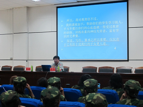 院长、硕士生导师郎伟教授在文科楼东侧报告厅为2012级全体新生做了题目为“谈谈高等教育中的人文精神培养和人格建设”的专题讲座,讲座由学院党总支副书记金玉河老师主持。