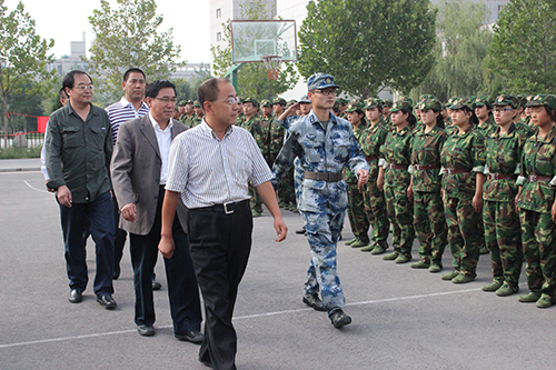 其次,鲁晋书记发表了慰问讲话,他充分肯定了同学们开训九天以来不怕苦、不怕累的精神,对教官们的辛勤劳动表示感谢;希望同学们能够在接下来的训练中始终以饱满的热情和顽强的意志锤炼品质,把军训中养成的良好素质带入今后的学习、生活和工作中去;鲁晋书记还引用了毛泽东的著名诗词《为女兵题照》,其中“中华儿女多奇志,不爱红装爱武装。”将讲话内容推向了高潮。