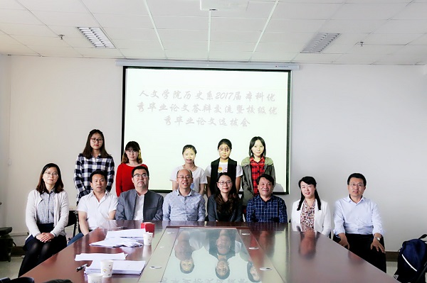 历史系2017届本科优秀毕业论文交流暨校级优秀论文评选会”。本次交流答辩会特邀学院副院长刘鸿雁、副院长杨浣出席,会议由历史系主任王朝海副教授主持,刘莉教授担任此次评委会组长、成员由张新军副教授、杨作山教授、白建灵副教授、张园园博士组成。