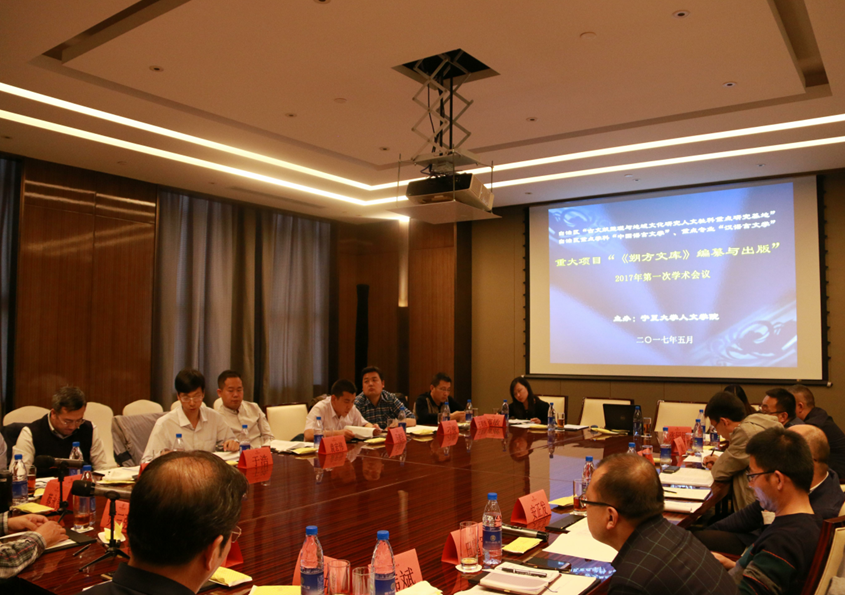 2017年5月6日,自治区“古文献整理与地域文化研究人文社科重点研究基地”、自治区重点学科“中国语言文学”、重点专业“汉语言文学”重大项目“《朔方文库》编纂与出版”召开了2017年第一次学术会议。来自西北大学、国家图书馆出版社、北方民族大学、宁夏师范学院、宁夏文史馆、宁夏博物馆、宁夏考古文物研究所、海角社区