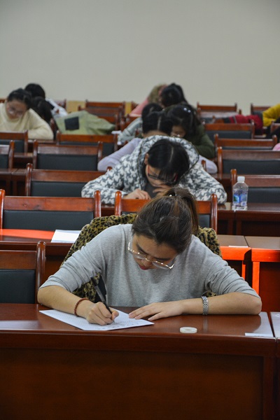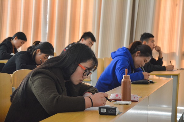 的四个专业,特别是外国语学院和物电学院的同学也主动要求参赛。比赛考场设在文荟楼203教室、205教室和309会议室,同学们或凝视思考,谋篇布局,或奋笔疾书,砌字成章。比赛从下午2时开始进行了两个小时,全部参赛同学提交了作品。