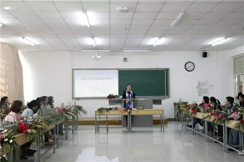 为了庆祝第108个国际妇女节,丰富学院女性教职工的业余生活,弘扬中国传统插花艺术,学院于3月14日下午在文荟楼401教室举行插花艺术礼仪讲座和培训活动。活动由学院党委副书记金玉河主持,银川天地缘花店花艺总监戚建筠主讲,学院女教工及部分女学生代表参加。