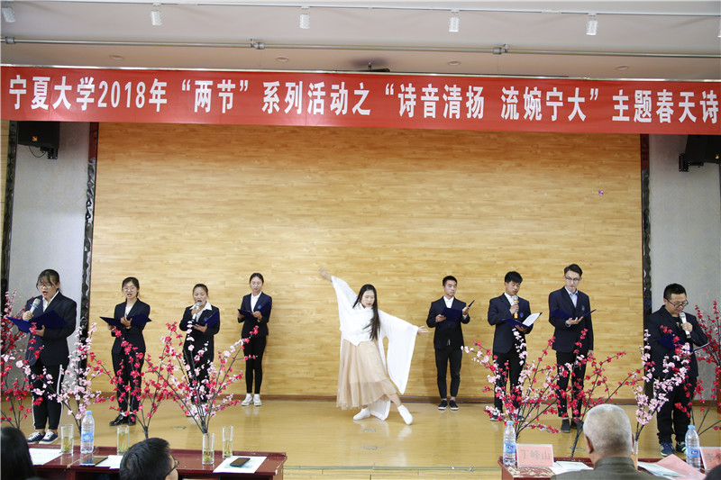 文人墨客,齐聚一堂,赋诗吟词,无问西东。“有质量、有内涵、有时代气息的校园文化需要师生的共同努力,高雅的活动亦需要形式上的创新和开放包容的理念做支撑”,诗会在校团委冯学文副书记的这段精彩致辞中拉开帷幕。接着,但见瓢中清,翠影落群岫,宁大爱心茶室以杯杯佳茗敬奉师友,为此次诗会献礼。之后,白鹭诗社的一曲《礼仪之邦》,以诗情述说我大中国礼仪之风,为后续节目精彩开场。你看,那是马上少年郎的英姿;你听,那是一曲长恨歌的哀怨;再回首,那又是一世一双人的凄婉。恍惚间似将我们带入了那河畔之间,品流觞曲水之雅兴;又好像将我们带入了那烈烈少年的英姿之中,味华夏青年之壮志豪情。《落笔一幽兰,难描虎贲情》,柔情与壮志交融,温婉与灵动相生,带给大家别致的诗韵。中场时分,由朗诵名家马利荣、李爱荣和汪伟民分别带来的《花朵盛开的村庄》和《春天,遂想起》,仿佛一场场视觉的饕餮盛宴,余韵悠长,耐人寻味。清新淡雅的《雨巷》带领大家走进了江南烟雨的小镇,深情地吟咏描绘了一幅动人的画面,缠绵哀婉,古色古香。最后,诗会在集体诗朗诵《凤凰涅槃》中落下了帷幕,笔锋流转里,落于纸上的是激扬文字;深情吟咏中,滞于心间的是恒久的诗情画意。