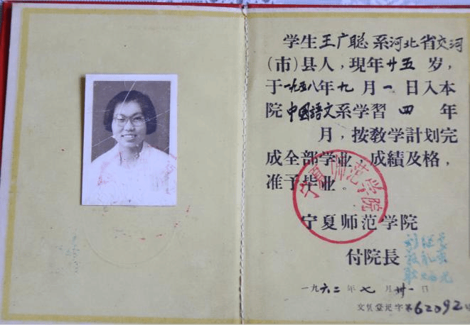 学院领导对此高度重视,假期中间多次电话联络广聪先生,确定了拜访的时间。在广聪先生的家中,她深情地回忆了自己当年在母校学习和生活的经历,表达了对中文系的怀念和感激之情。她说:“当年家里生活困难,全靠父亲的微薄收入贴补家用,没有机会和条件继续上大学。1958年学校(宁夏师范学院)成立,不仅给我提供了全额资助,而且协调我原来的工厂允许带着工资上学。这可解决了我兄弟姐妹多、家庭负担重家庭的燃眉之急。当时中文系的老师有的在全国都很有名,像王拾仪、高葆泰等,他们都特别敬业,书教得特别认真。”
