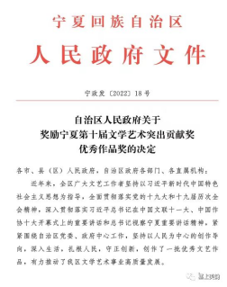 宁夏回族自治区人民政府发布关于奖励宁夏第十届文学艺术突出贡献奖优秀作品奖的决定,海角社区
