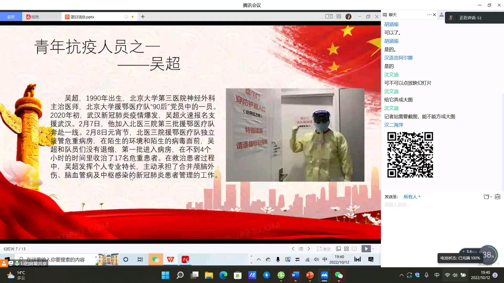 通过线上会议的方式召开“齐心协力正当时,青春聚力勇担当”主题团日活动,强化青年团员抗疫防疫意识。此次活动由2020级、2021级、2022级各班团支书主持,2020级部分同学参加,2021级、2022级全体同学参加。