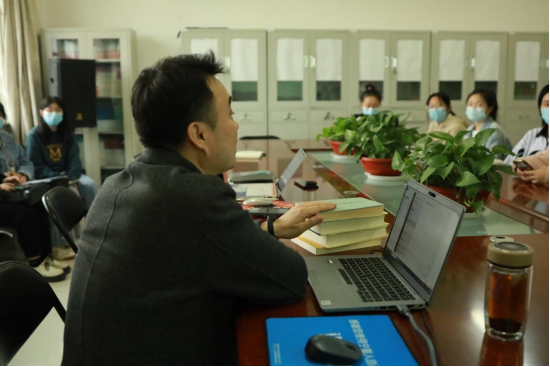 在研读环节结束之后,杨老师提到了大学生创新创业项目的相关事宜。创新创业项目该怎么做,其中的论文写作和读书虽然有所差异,但是二者之间并不抵触。读书学习是为了发现问题解决问题,创新创业项目的论文也是如此,随后杨老师请2020级汉教二班施娜、孟祥文两位同学就其校级创新项目进行了路演展示。