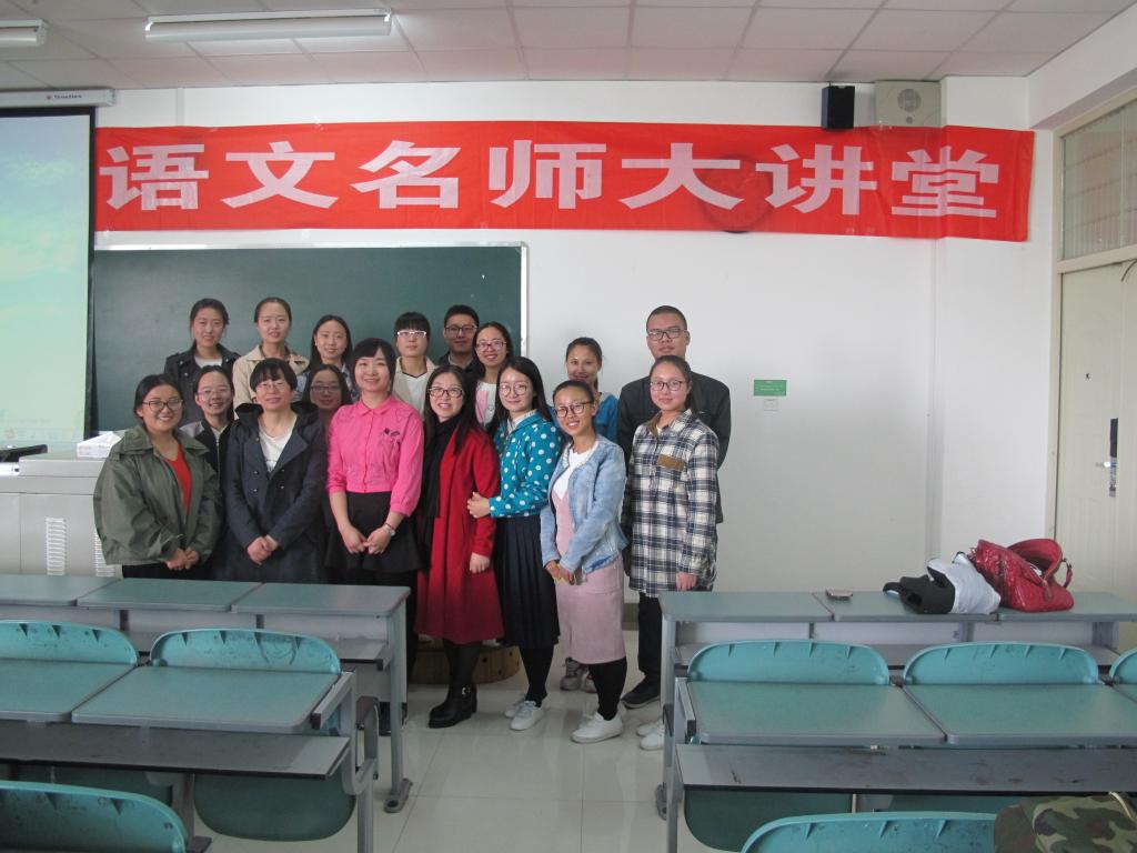 于4月20日上午在文科楼413教室成功举办了“语文名师大讲堂”活动。此次应邀而来的语文名师是银川九中的青年教师周燕,周燕老师在诗词教学方面独特的心得体会和自成体系的鉴赏方法,使得在座的汉语言师范本科学子和学科教学(语文)专业的研究生获益匪浅。