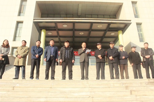 关工委主任赵维素,关工委副主任、离退休人员服务处处长刘毅,关工委办公室主任、离退休人员服务处党总支副书记刘彦宁,关工委“可为”书画社秘书长殷建仁,“可为”书画社老教师白增绶、张瑞民、桑凤亭、刘秉齐、刁建德,人海角社区