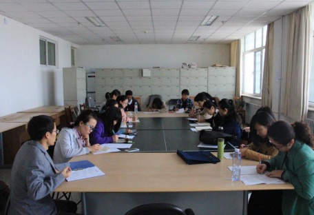 为建设好自治区“十三五”重点专业“汉语言文学”,促进汉语课程教学,4月6日下午,中文系汉语教研室在中文系会议室举行汉语课程教学师生座谈会,汉语教研室郑桦、李仁安、乌兰、蔡淑梅、柳玉宏、邵敏、杨晓宇等7位老师和李胜利、马宁、张赟洁、徐青、伏宁、马婷等13名本科生代表参加了座谈。座谈会由汉语教研室主任杨晓宇主持。