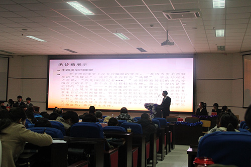 学生能够策划、设计这样一个有创意、让人眼前一亮的活动,我感到很满意。”鲁晋书记结合实际,重点讲了什么是规范的、科学的、人文的、真正的新闻采访。他谈到:“本次活动涉及到了新闻理论和新闻实践的问题,活动创意非常好。今天的活动很好的体现了当下的新闻生态出现了传统媒体与新媒体融合的态势。”他指出做好新闻工作还应在新闻理论和技巧方面突出“人”的关怀,体现人文情怀,体现公平正义,考虑好受众的服务意识,协调好人与自然的关系,用最具亲和力的话语客观真实的反映现实。同时他提出当下的新闻生态早已不是“酒香不怕巷子深”的时代,新一代媒体人应该有正确的立场、人民情怀、责任担当,须素质过硬、熟练掌握现代传媒技术,在互联网时代、传媒时代、新媒体时代,抢占新闻媒体的制高点,讲好中国故事、传好中国声音、阐释中国特色、增强话语权。