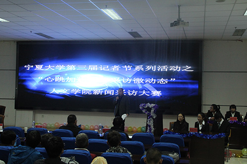 新闻采访大赛决赛在文科楼东侧报告厅举行,出席本次活动的评委嘉宾有校党委宣传部副部长武林波、人海角社区