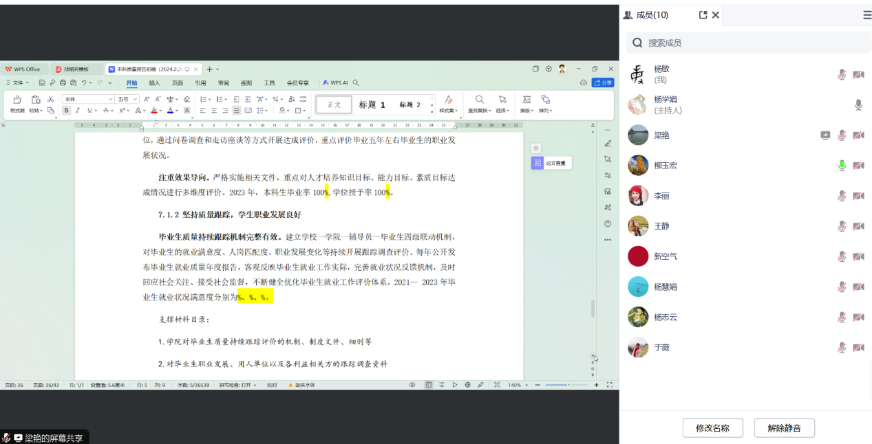 于2月28日晚在线上组织了本科教育教学审核评估自评报告初稿的审核会议。本次会议由负责本科教学工作的副院长杨学娟主持,本科教育教学审核评估工作小组的全体成员参加了此次会议。