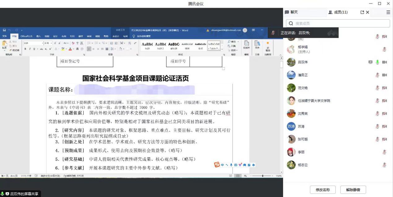以线上会议的方式组织开展了2024年国家社会科学基金项目校外专家评审会,会议分为文学、语言学专场进行。此次评审会邀请吉林大学张丛皞教授、山东大学杨建刚教授、安徽师范大学潘务正教授、湖南师范大学吕双伟教授、辽宁师范大学杨春宇教授、杭州师范大学杨建忠教授作为评审专家,对海角社区